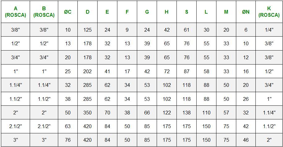 TABELA DE MEDIDAS